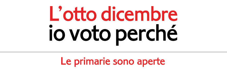 ‘L’otto dicembre io voto perché’ lo slogan scelto, accompagnato dal payoff 'Le primarie sono aperte’, per chiamare il popolo democratico a votare l'8 dicembre alle primarie per eleggere il segretario del partito. Primarie aperte anche ai non iscritti e ai sedicenni.
